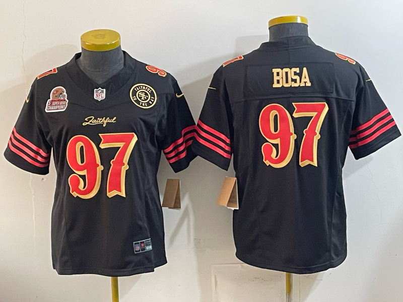49ers 26/27 Bosa #97 Black/Red/Yellow Women NFL Jersey